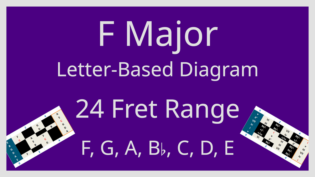 F Major – Letter-Based Guitar Diagram (24 Fret)
